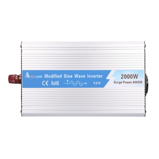Przetwornica napięcia Extralink OPIM-2000W to urządzenie, które zamienia napięcie wyjściowe akumulatora (prąd stały, DC) na prąd sieciowy 230V AC (prąd przemienny). 230V AC to rodzaj prądu dostarczanego przez zakłady użyteczności publicznej do zasilania standardowych urządzeń AGD, takich jak telewizor, lodówka, radio, oświetlenie lub do ładowania laptopa/telefonu komórkowego itp.
