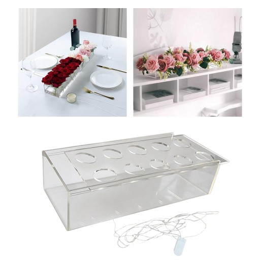 Praktyczny projekt: każdy z przezroczystych wazonów na elementy centralne ma zdejmowany panel z otworami, dzięki czemu łatwo go wyczyścić, a otwory mogą utrzymać stabilność kwiatów, a także przezroczysty wazon akrylowy zapewnia dobrą szansę na obserwację jak rosną kwiaty.