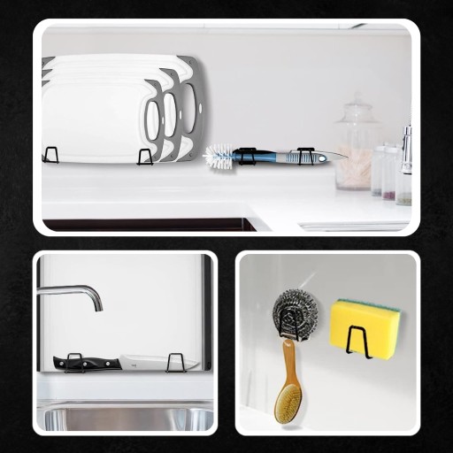 Praktyczny uchwyt który doskonale sprawdzi się w twojej kuchni i łazience. Dzięki niemu utrzymasz porządek w swoim domu, jednocześnie twoje akcesoria kuchenne i łazenkowe wyschną w higieniczny sposób, bez pozostawiania bałaganu na blatach czy umywalce.