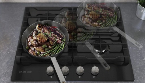 Płyta gazowa Samsung wyposażona jest w 4 palniki, które dostarczają imponującą moc 8,0 kW. Mając do dyspozycji tak dużą moc, możesz wygodnie przygotowywać potrawy wymagające na przykład szybkiego i intensywnego podsmażenia składników. Gotowanie wody, a także wszelkich potraw również jest o wiele szybsze. W zależności od tego, czy po prostu się spieszysz, czy też chcesz zachować pyszny smak jedzenia, z pewnością znajdziesz palnik spełniający twoje potrzeby.