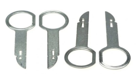 Komplet kluczy (wyjmaków) przeznaczony do demontażu radia samochodowego lub nawigacji. Klucze pozwalają w bardzo prosty i szybki sposób wyjąć radio lub nawigację z samochodu bez uszkodzeń deski rozdzielczej lub panelu środkowego.