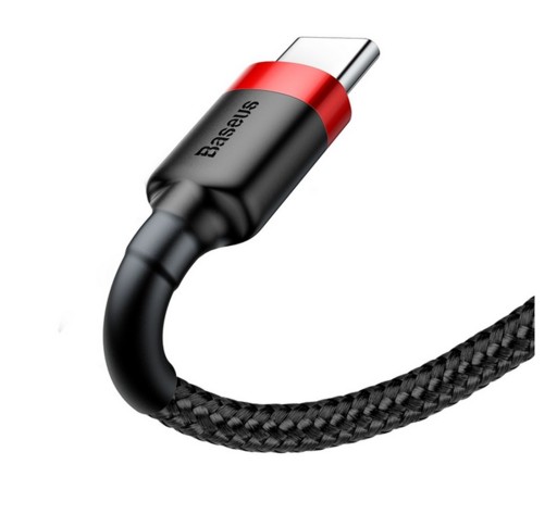 Nowy oryginalny produkt Baseus Cafule Cable wytrzymały nylonowy kabel przewód USB / USB-C QC3.0 3A 1M czarno-czerwony (CATKLF-B91)