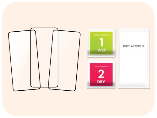 - 3x Sucha ściereczka — do dokładnego wytarcia ekranu przed naklejeniem szkła