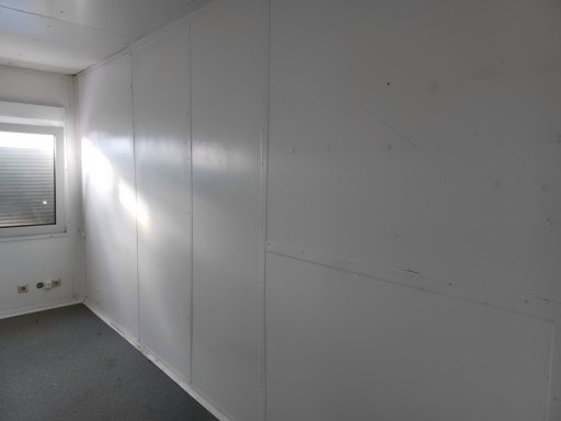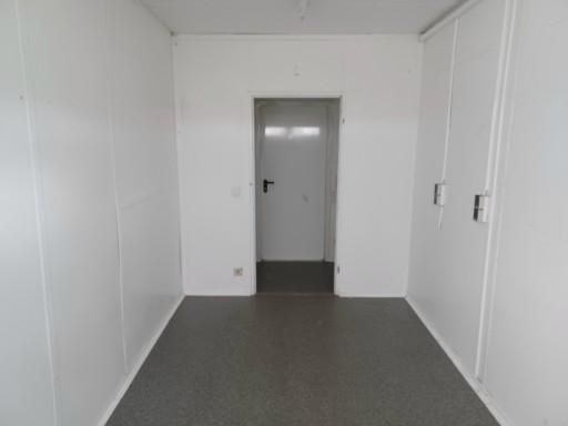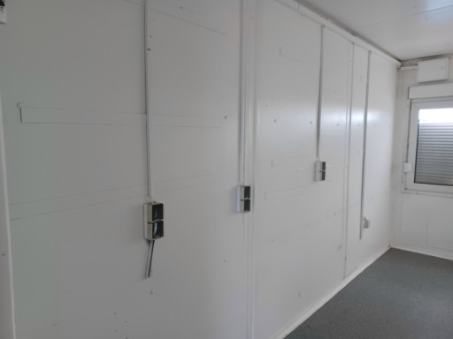 Drzwi i duże okno z roletą zewnętrzną vis a vis w ścianach krótkich, co sprawia, że kontener idealnie sprawdza się na budowach (możliwość piętrowania i zestawiania.)