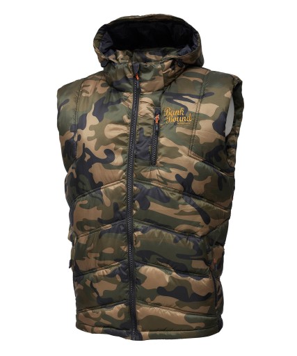 Ciepła i lekka kamizelka w kamuflażu z powłoką hydrofobową.