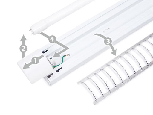 ✔ oprawa jest kompatybilna z powszechnie stosowanymi świetlówkami LED T8 o długości 120 cm, co pozwala dostosować barwę światła według własnych preferencji