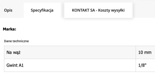 Króciec mosiężny złączka pneumatyczna gwint 1/8" na wąż 10mm 10szt