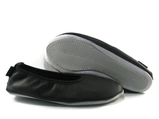 2. Podeszwa wykonana jest z miękkiej skóry, na której od zewnątrz naszyto dodatkową warstwę antypoślizgową