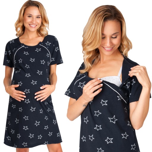 Koszula nocna na okres ciąży, porodu i do karmienia.