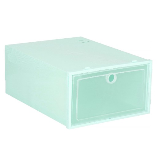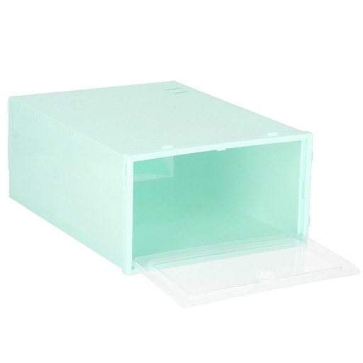 Pojemnik na obuwie został wyposażony w zamykaną klapę, które pozwoli na szybki dostęp do wybranych butów. Dodatkowo pudełko posiada specjalne zaczepy pozwalające na łączenie ze sobą pudełek umożliwiając tym samym ułożenie je na sobie. Używając organizera z zamknięciem buty zostaną ochronione przed kurzem oraz wilgocią.