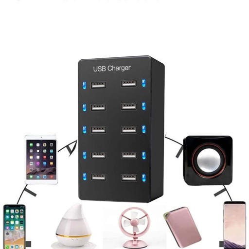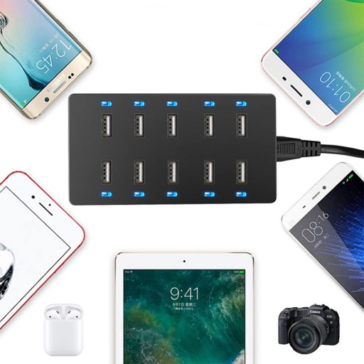 - ⚡ - 10-portowa ładowarka USB o łącznej mocy 50 W (i umożliwia ładowanie przy 10 amperach w 10 portach lub 2,4 ampera na port), może ładować wiele urządzeń jednocześnie (kompatybilna z prawie wszystkimi smartfonami, iPadami, powerbankami, urządzeniami elektrycznymi Fani)