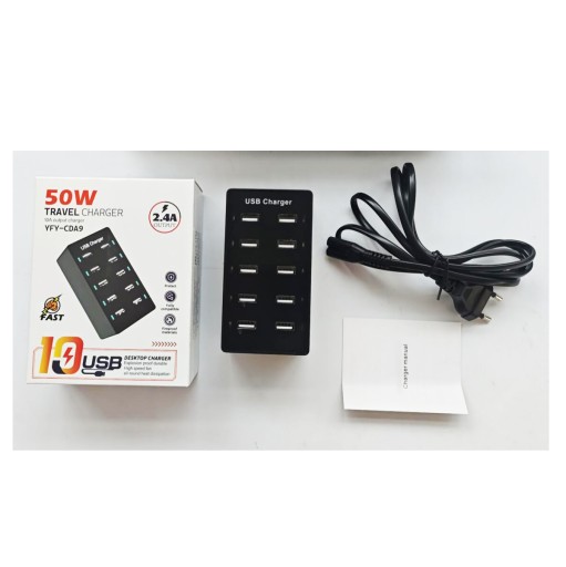НАСТОЛЬНОЕ USB-ЗАРЯДНОЕ УСТРОЙСТВО С 10 ПОРТАМИ ИНТЕЛЛЕКТУАЛЬНЫЙ POWERBANKI 50 Вт 10 А 5 В 1,4 М