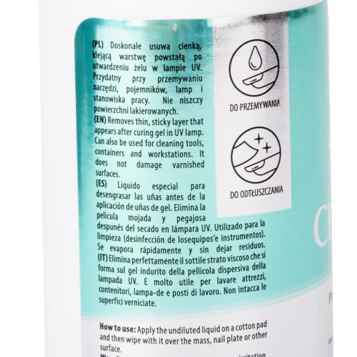 Cleaner najczęściej nazywany jest odtłuszczaczem do paznokci. Służy do przemywania lakieru hybrydowego, akrylu i żelu. Oprócz tego, że skutecznie odtłuszcza, nadaje połysk niemal wszystkim typom lakierów do paznokci.