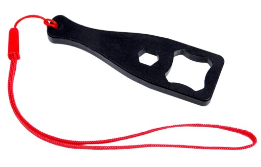 Dzięki kluczowi pewne przykręcenie śrub jest dziecinnie proste oraz daje gwarancję sztywnego mocowania. Wykonany niezwykle starannie z wysokiej jakości tworzywa. Posiada otwór dzięki któremu możemy przyczepić go np. do kluczy. W zestawie znajduje się również smycz w rzucającym się w oczy czerwonym kolorze.