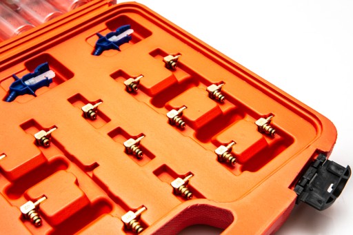 Przeznaczony do diagnostyki wtryskiwaczy w silnikach diesla metodą przelewową. Możliwość jednoczesnego sprawdzenia 6 wtryskiwaczy. Do wtryskiwaczy marek: BOSCH, SIEMENS, DENSO, DELPHI. 31 sztuki w zestawie.