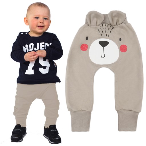 Praktyczny element codziennej dziecięcej garderoby a oryginalny design z nadrukiem misia z trójwymiarowymi uszkami na pupie dodadzą maluchowi niepowtarzalnego uroku.
