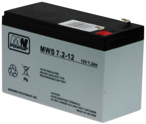 Akumulator MWS 7,2-12 to bezobsługowy akumulator kwasowo-ołowiowy (VRLA). Jest to szczelny akumulator, w którym gazy wydzielane podczas ładowania ulegają procesowi rekombinacji tworząc wodę, co eliminuje konieczność jej uzupełniania. Został wykonany w technologii AGM-(Absorbed Glass Mat), gdzie elektrolit jest umieszczony w separatorach z włókna szklanego. Brak płynnego elektrolitu pozwala umieścić akumulator niemal w każdej pozycji.