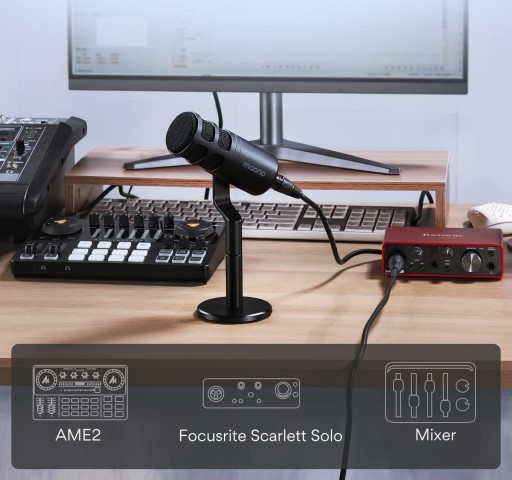 Trzypinowe złącze XLR pozwala podłączyć mikrofon m.in. do miksera dźwięków czy karty dźwiękowej z wejściem XLR, takiej jak np. AMC2 lub Maonocaster AME2