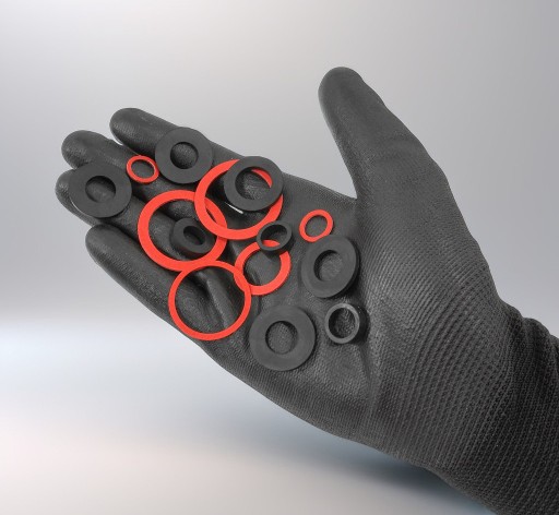 Zestaw uszczelek hydraulicznych gumowych oraz z wulkanizowanej tekstury do instalacji zimnej i ciepłej wody. Czarne przeznaczone do instalacji zimnej wody i czerwone do instalacji ciepłej wody.
