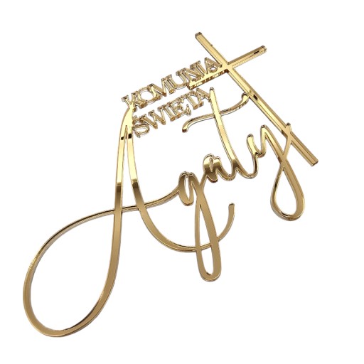 Dodając ten dekor na tort, personalizujesz komunijny deser, nadając mu niepowtarzalny charakter. Złota lustrzana plexi dodaje też elementu dostojności, tworząc wyjątkową oprawę dla tortu na Komunię Świętą. To doskonały sposób, aby uczcić tę ważną uroczystość w elegancki i spersonalizowany sposób.