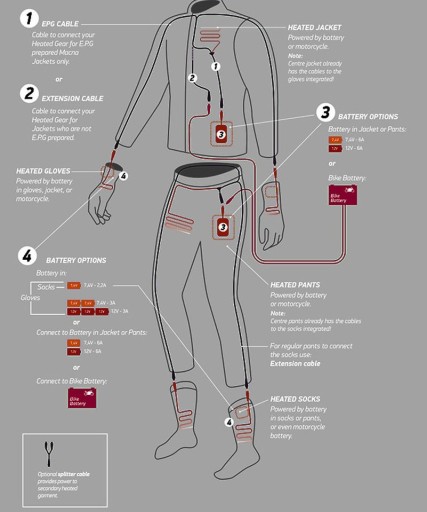Produkty odzieżowe MACNA i KLAN-e dostarczane są bez okablowania ani baterii - są to elementy, które należy dokupić osobno.