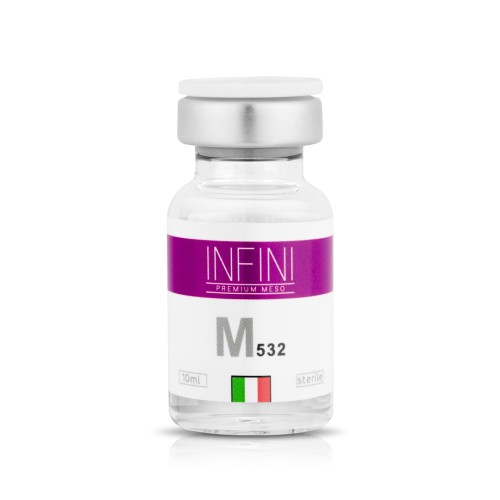 INFINI Premium Meso M 532 to koktajl przeciwstarzeniowy dla skóry każdego typu. Regularne stosowanie preparatu widocznie odmładza skórę poprawiając jej koloryt, wypłycając drobne zmarszczki oraz intensywnie nawilżając. Odpowiednio dobrane witaminy w połączeniu z nieusieciowanym kwasem hialuronowym oraz aminokwasami mogą stanowić podstawę zabiegu anit-aging lub jego uzupełnienie.