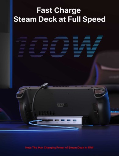 ✅ Stacja dokująca posiada antypoślizgowe gumki. Twój Steam Deck będzie bezpiecznie stał w stacji dokującej