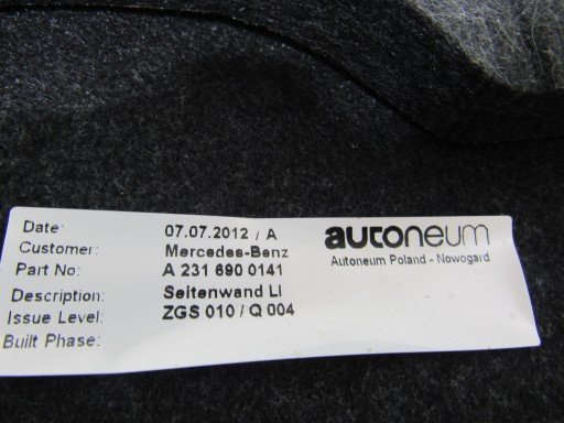 PRZEDMIOTEM NASZEJ AUKCJI JEST OSŁONA BOCZEK BAGAŻNIKA LEWY LUB PRAWY DO MERCEDES SL W231 R231.