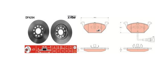КОМПЛЕКТ ДИСКОВ И КОЛОДОК ПЕРЕДНИХ TRW VW GOLF 2003 - 2014 ГОД