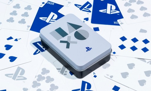 Oficjalne karty do gry i artykuły uzupełniające z katalogu produktów z logo, zdjęciami i grafiką marki Playstation.