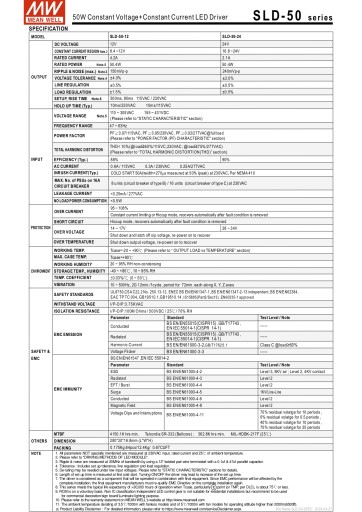 SLD 50W działa na napiecie 110-305V AC i oferuje modele o różnym napięciu znamionowym 12V 24V i 56V,