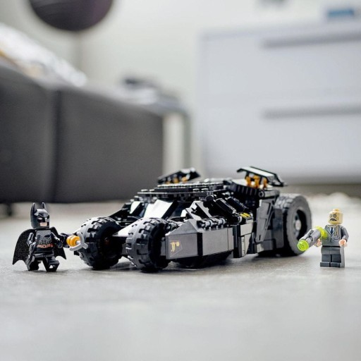 Batmobil™ Tumbler z trylogii filmów o Mrocznym Rycerzu™ to jeden z najbardziej rozpoznawalnych pojazdów bojowych w historii kina. Ma otwierany dach, który pozwala sięgnąć do miejsc kierowcy i pasażera oraz panelu sterowania. Z przodu pojazdu zamontowane są dwa miotacze klocków. Jest tam nawet schowek na Batarang™. W zestawie są dwie minifigurki: Batman ze swoim Batarangiem, miotaczem liny z hakiem i zamienną głową z wyglądem nocnej zjawy, a także Strach na Wróble z miotaczem klocków i kanistrem trującego gazu straszącego. Po zakończeniu walki Batmobil Tumbler może stanąć na półce — będzie fajną ozdobą dziecięcej sypialni.