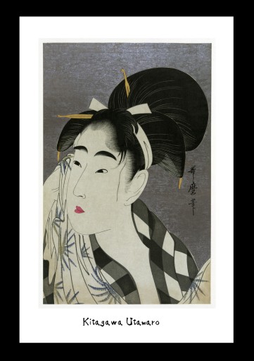 Kopia drzeworytu wybitnego japońskiego artysty znanego jako Kitagawa Utamaro. Wydruk na papierze satynowym 350g. Format A4. Ramka z tworzywa sztucznego.