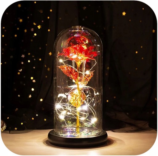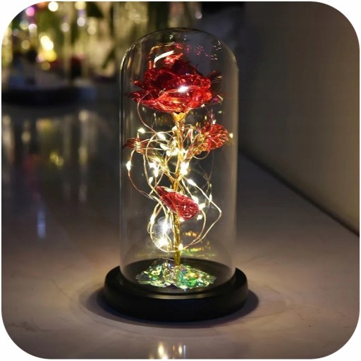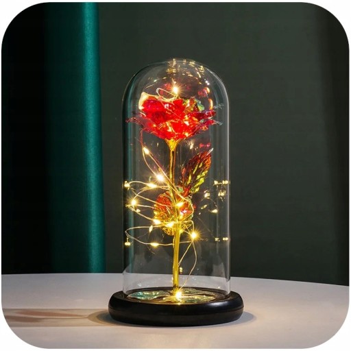 " Świecąca Wieczna Róża w Szkle z Lampek LED