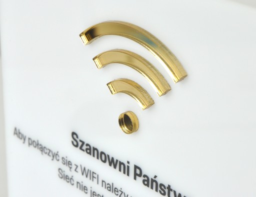 Tabliczka wykonana jest z wysokiej jakości plexi mlecznej o grubości 3 mm. Tworzona jest przy wykorzystaniu nowoczesnych technik cięcia laserem oraz druku UV. Dodatkowo statuetkę zdobią złote elementy z plexi lustrzanej o grubości 3 mm. Podstawka wykonana jest z plexi mlecznej. Całość tworzy elegancką kompozycję, która bez wątpienia zwróci uwagę Twoich Klientów i zachęci ich, by śledzili w social mediach Twój rozwój.