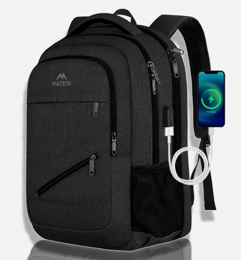 Школьный бизнес-рюкзак MATEIN City для ноутбука 17,3", вместительный USB, черный