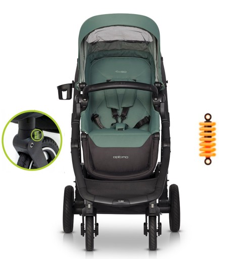 OPTIMO to pełnowymiarowa spacerówka o niezwykle atrakcyjnym, nowoczesnym designie. Jednym z jej wielu atutów jest lekki, aluminiowy stelaż - dzięki któremu wózek charakteryzuje się fenomenalną zwrotnością i niezawodnością podczas prowadzenia.