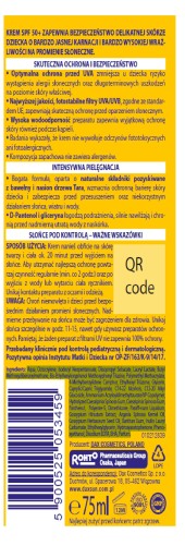 - Krem zapewnia bezpieczeństwo delikatnej skórze dziecka o bardzo jasnej karnacji i bardzo wysokiej wrażliwości na promienie słoneczne.