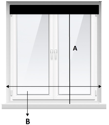 Wymiar B- Szerokość okna lub wnęki + zakładka na ścianę (według uznania) zalecamy około 5 cm z każdej strony