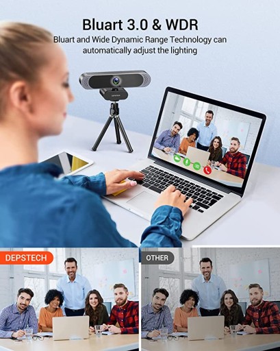 Kamera internetowa DEPSTECH 1080P z 6-warstwowym szklanym obiektywem HD i przetwornikiem obrazu 1/2,9” CMOS zapewnia ostry i krystalicznie czysty obraz wideo z płynną szybkością 30 klatek na sekundę, specjalnie zaprojektowana kamera internetowa do komputera PC do rozmów wideo o profesjonalnej jakości lub nagrywania wideo .