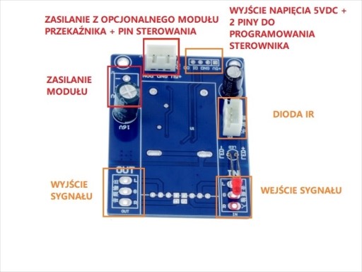 (proszę wyszukać po frazie "moduł przekaźnika" w naszym sklepie) aby mieć możliwość włączenia/wyłączenia urządzenia przyciskiem on/off z pilota