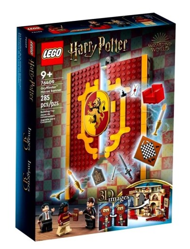 - LEGO® Harry Potter™ Flaga Gryffindoru™ (76409) – ta flaga do zbudowania pozwoli dzieciom pokazać ich lojalność wobec Gryffindoru. Zawieś ją lub otwórz, by bawić się w szczegółowym pokoju wspólnym