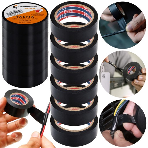 - 6 rolek profesjonalnej taśmy izolacyjnej o szerokości 17 mm i długości 6 m każda