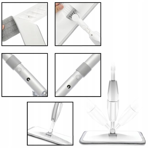 ✅Wbudowany spryskiwacz i zbiornik na wodę pozwalają na wygodne sprzątanie bez konieczności zanurzania mopa w wodzie.