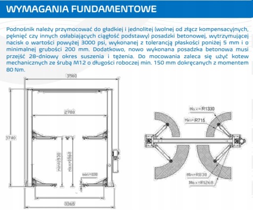 - Minimalna wysokość punktów podparcia 100mm