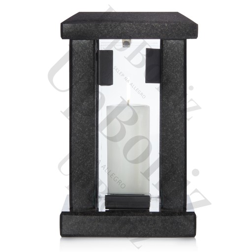 Solidny, ciężki cmentarny znicz - latarnia wykonana z wysokiej jakości granitu w kolorze klasycznej piaskowej czerni