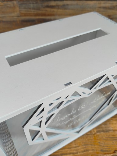 Pudełko na koperty od gości weselnych. Niezwykle wyjątkowy i elegancki element każdej uroczystości ślubnej. Idealna jako dekoracja i dodatek do wystroju sali weselnej. Świetnie sprawdzi się podczas ceremonii składania życzeń przez gości weselnych, w którym będą mogli umieścić życzenia i podarunki, a po wydarzeniu będzie oryginalną pamiątką tego niezwykłego dnia.