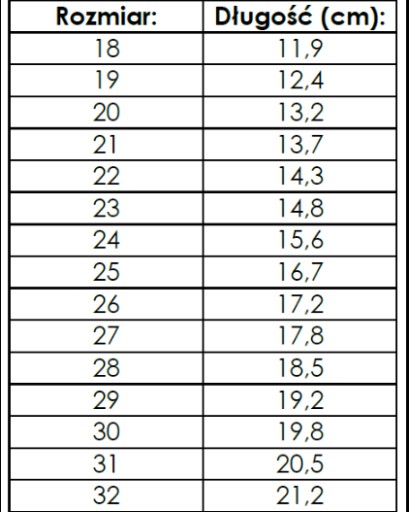 czyli od 12 do 21 cm długości stopy dziecka
