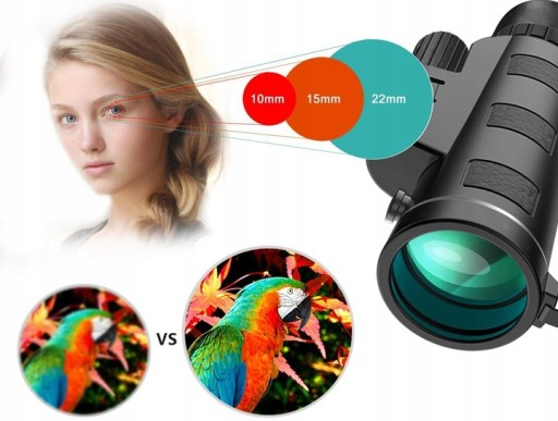 - PRAKTYCZNY – obiektyw jest lekki, waży zaledwie 300g, więc korzystanie z niego nie stanowi problemu. Do zestawu dołączono pokrowiec, który ma możliwość przypięcia do paska spodni – włożymy do niego obiektyw wraz z innymi akcesoriami dołączonymi do zestawu. Do lunety możemy przyczepić smycz, która dodatkowo zwiększy bezpieczne przenoszenie sprzętu. Obiektyw posiada również zaślepki, które ochronią soczewkę przed zabrudzeniami. Produkt posiada wbudowany kompas, który będzie doskonałym gadżetem uzupełniającym podczas podróży – pozwoli na ciągłą kontrolę terenu, co jest dużym ułatwieniem dla osób, które kochają podróże. Pokrętło znajdujące się na obiektywie umożliwia wyostrzenie obrazu – pozwala na indywidualne dostosowanie do wady wzroku.