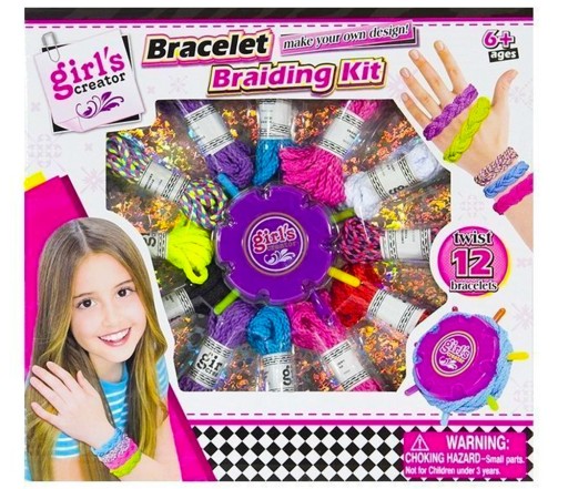 Zestaw zawiera 12 kolorowych sznurków, średnica sznureczka to ok. 0,5 cm. Z każdego z nich możesz zrobić bransoletkę, warkocza. Dodatkowo urządzenie, ułatwi zaplatanie i tworzenie bransoletek.